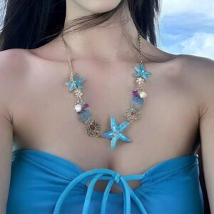 夏日蓝色海星贝壳项链女海边度假风颈链氛围感拍照配饰轻奢锁骨链