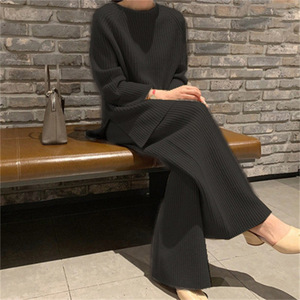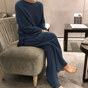 气质韩版秋冬新款毛衣套装女时尚休闲宽松显瘦针织阔腿裤两件套潮