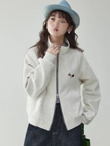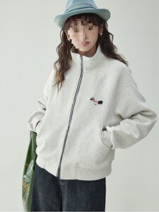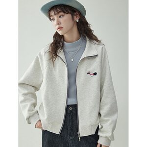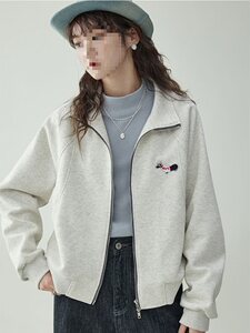 刺绣卫衣女拉链薄款外套春秋季新款韩版宽松立领开衫休闲短款上衣