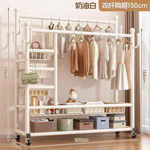 【升级巨粗32管】奶油白150cm-双杆大容量(双层网篮收纳)送金属轮