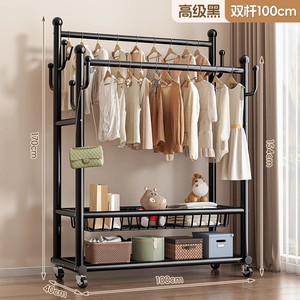 家用挂衣架卧室落地移动衣帽架玄关房间用次净衣服置物架晾晒衣杆