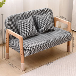 双人千鸟格黑白色实木沙发
