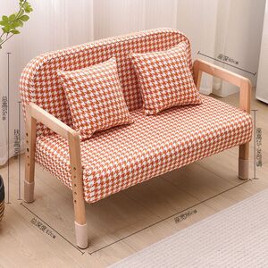 双人千鸟格暖橙色实木沙发