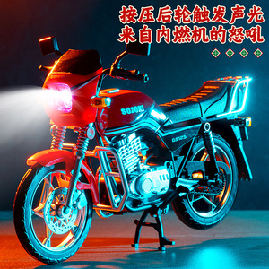 盒装1:10复古铃木王摩托车模型声光男孩模摆件礼物合金摩托车玩具