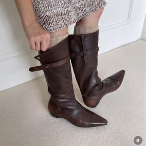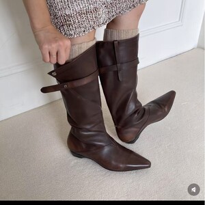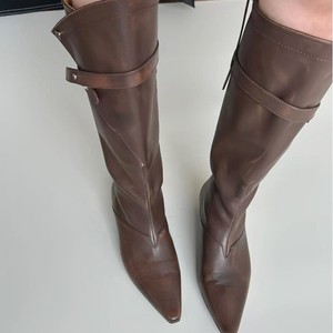 2025秋冬新款圆头高筒瘦瘦不过膝骑士皮带扣铆钉粗跟女长靴