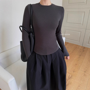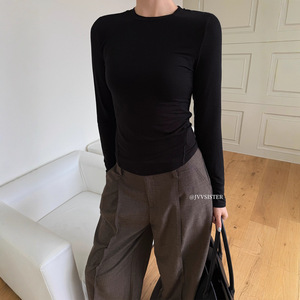 JVV十三行2025秋季新款气质修身显瘦圆领上衣百搭长袖T恤女00602
