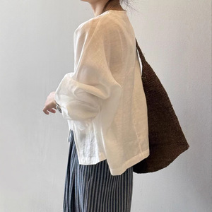 秋装新款感苎麻开衫外套法式轻奢防晒衫长袖衬衫上衣