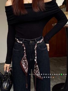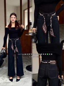 5625秋季新款高弹高腰配腰带直筒九分阔腿裤百搭显瘦刺绣奶奶裤