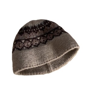 复古提花针织渔夫帽子女秋冬韩系大头围盆帽保暖护耳显脸小毛线帽