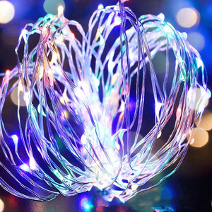 跨境LED灯串铜线灯纽扣电池盒铜丝圣诞彩灯户内外花园装饰彩灯串