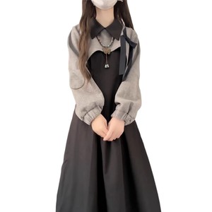 法式黑色长袖连衣裙子女秋冬季2025新款小个子入秋一整套穿搭套装