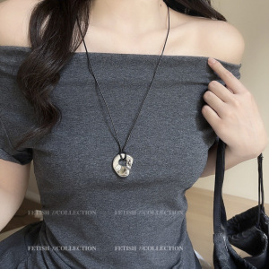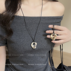 韩系抽象镂空银色吊坠项链女2025新款皮绳毛衣链长款小众挂脖配饰