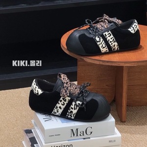 复古豹纹系带德训鞋女2025早秋新款薄底内增高赛车鞋运动休闲鞋子