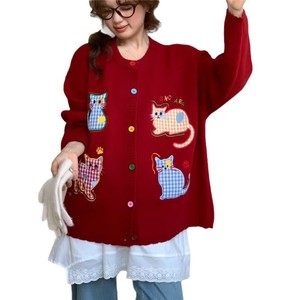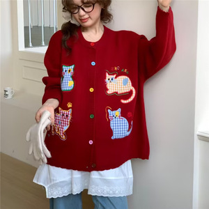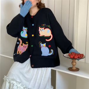 学院风减龄重工刺绣卡通针织开衫秋冬新款设计感小众宽松毛衣外套