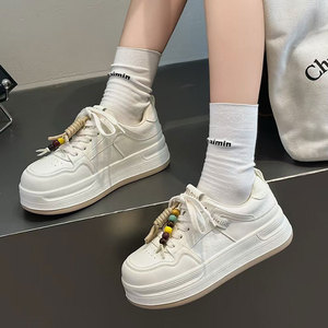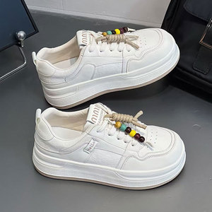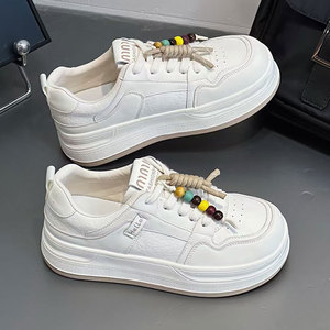 韩版真皮厚底小白鞋2025秋季跑步运动休闲百搭舒适串珠舒适板鞋女