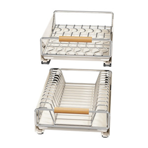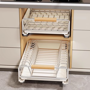 厨房抽拉碗碟收纳架橱柜内放碗拉篮抽屉式碗盘盘子置物架沥水架子