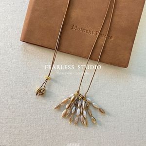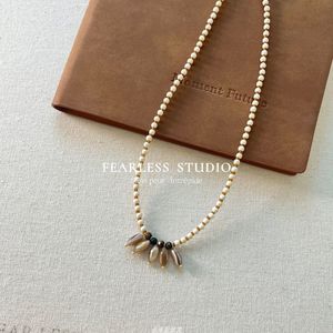 小众设计天然贝壳珠流苏吊坠蜡绳项链叠戴串珠项链女