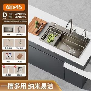 网红枪灰【68*45】纳米抗菌小米粒压纹-大单槽-抽拉龙头-洗杯器套餐