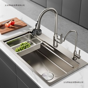 网红黑金刚【75*45】纳米抗菌小米粒压纹-大单槽-抽拉龙头-洗杯器套餐