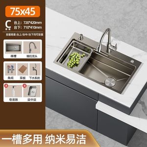 网红枪灰【75*45】纳米抗菌小米粒压纹-大单槽-大弯龙头套餐