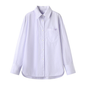 现货2025秋新款甜美宽松竖条纹字母刺绣衬衫MBE3SHT002