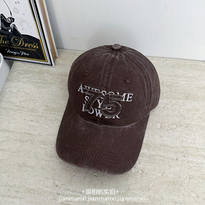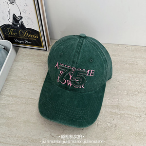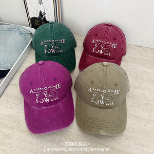 帽子女韩国东大门大标75贴布毛边鸭舌帽子男女软顶休闲百搭鸭舌帽