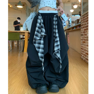 美式嘻哈街舞叠穿可拆卸阔腿裤女夏宽松垂感弯刀休闲裤爵士舞裤子