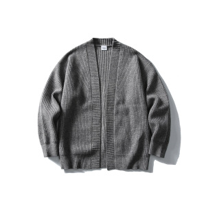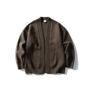 北界男装 美式潮牌2025秋季新款复古开衫毛衣男纯色针织线衫外套
