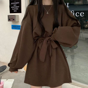 收腰a字连衣裙秋冬森系初恋裙温柔甜美学生连衣裙过膝超仙小个子