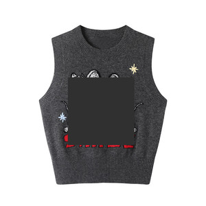 现货2025秋新品圆领宽松休闲提花无袖针织马甲MBE3SWT049
