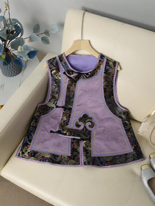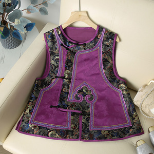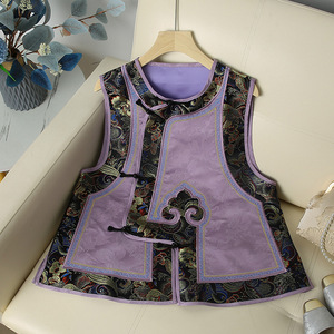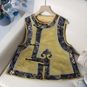 民族风新中式国风复古刺绣圆领斜襟盘扣百搭背心马夹开衫高级感