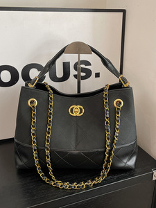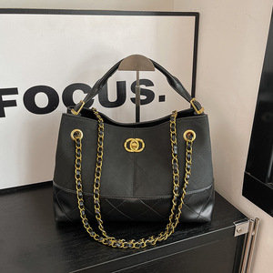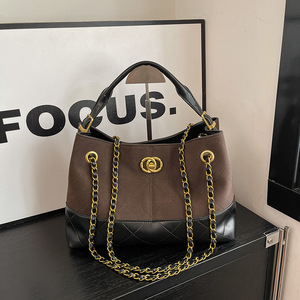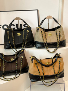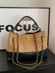 批发新款小众设计手提拼色水桶包白搭潮流链条包复古单肩斜跨包