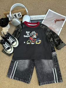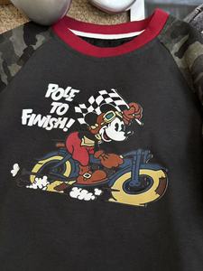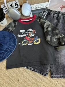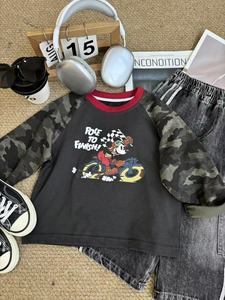 杉伴韩系男小童秋季新款迷彩袖卡通米奇印花圆领上衣宝宝潮打底衫
