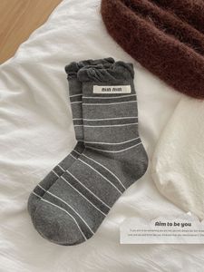 大泡泡口学院风布标条纹堆堆袜韩系中筒百搭无骨袜子miu系撞色袜