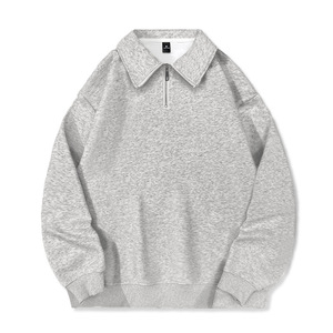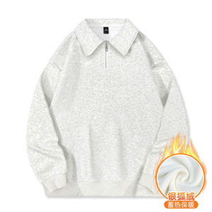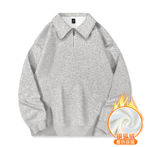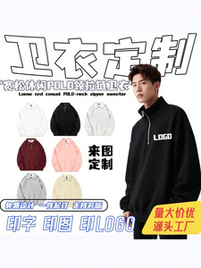 跨境卫衣定制休闲POLO领拉链卫衣秋冬加绒工作服印字logo宽松工服