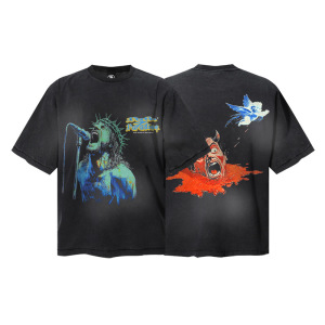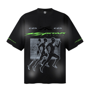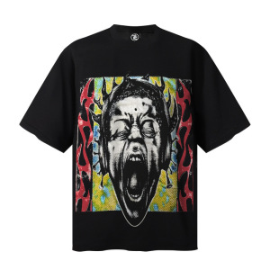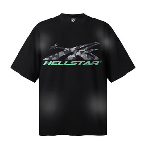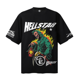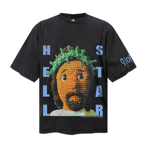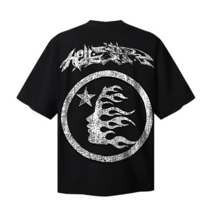 跨境欧美潮牌Hell地狱之星几何字母图案印花短袖t恤男女高街半袖