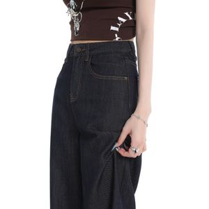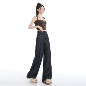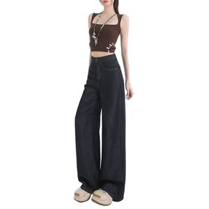 深蓝色天丝阔腿牛仔裤女夏季薄款莱赛尔小个子冰丝丹宁拖地直筒裤