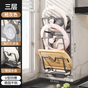 批发锅盖架壁挂免打孔厨房置物架多功能家用收纳菜板放置器砧板架