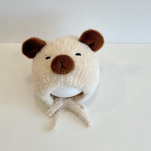冬季男女宝宝帽子可爱超萌卡皮巴拉毛绒童帽婴幼儿保暖护耳帽套头