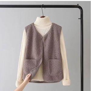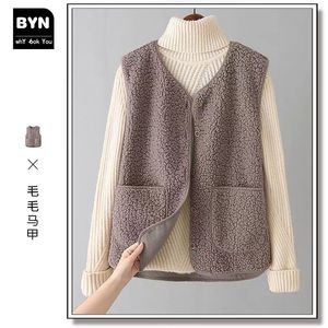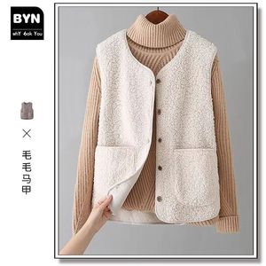 春季新款羊羔毛马甲女秋冬加厚保暖外穿百搭皮毛一体背心坎肩马夹