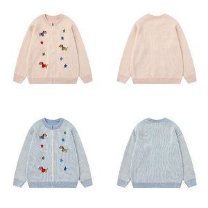 A013小众卡通图案设计中性针织衫外套街潮男女款高级感开衫毛衣
