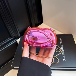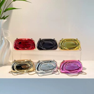 欧美跨境时尚潮流圆盒手拿晚宴包亚克力包复古金属提把单肩斜挎包