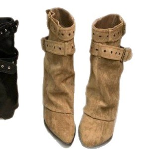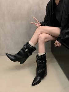 2025新品美式辣妹铆钉裤腿增高尖头短靴女秋冬新款西部牛仔靴