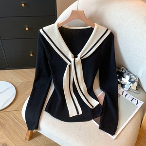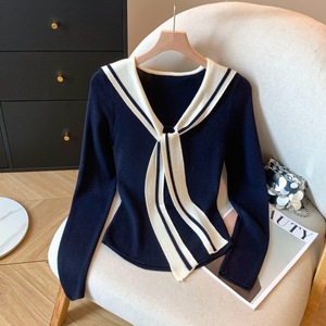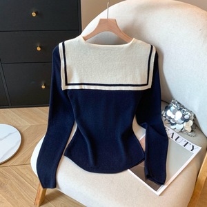 广州十三行高货爆款~设计针织衫减龄海军领披肩针织衫毛衣女上衣