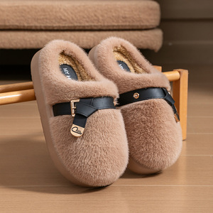 毛毛拖鞋女外穿2025新款居家室内保暖棉拖厚底加绒棉拖鞋女款秋冬
