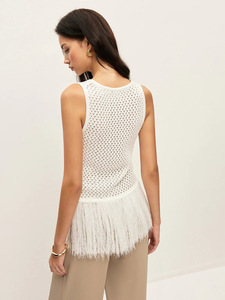 欧美2025新款跨境设计感镂空流苏无袖针织衫时尚休闲钩织衫