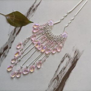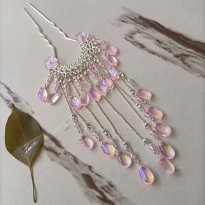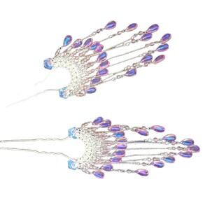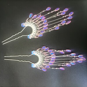 银色彩粉发钗一只