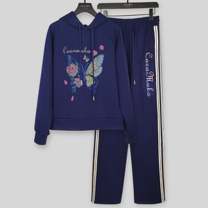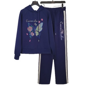 COCO MOKA秋冬新款休闲套装女士连帽上衣裤子两件套时尚烫钻套装