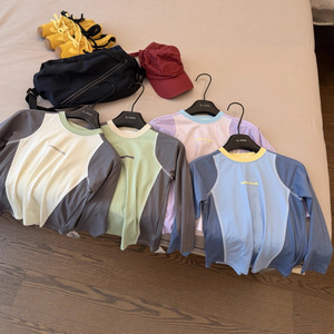 bh6019秋季新款男女中大童洋气户外山系风插肩长袖T恤休闲长裤