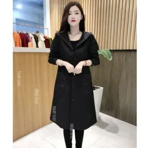 秋季年轻妈妈时尚风衣外套新款连帽纯色韩版口袋中长款洋气宽松女